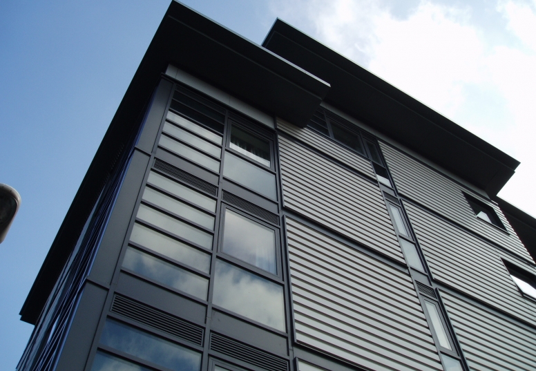 This student campus provides 316 bed spaces. The site fell within the emerging structure plan for Bath, with the intention of providing mixed development on sites previously zoned for employment use. The scheme shares the site with an office development of 2250 sq m. The low parking requirement for students permited the construction of a high density scheme and a landmark building on this gateway to Bath. Following protracted planning negotiations, planning permission was finally granted in May 2003 and construction was completed in September 2004.