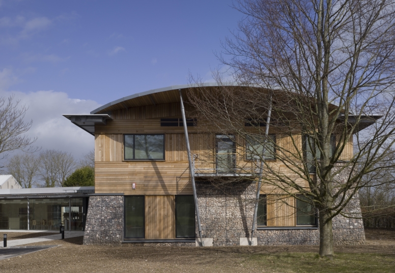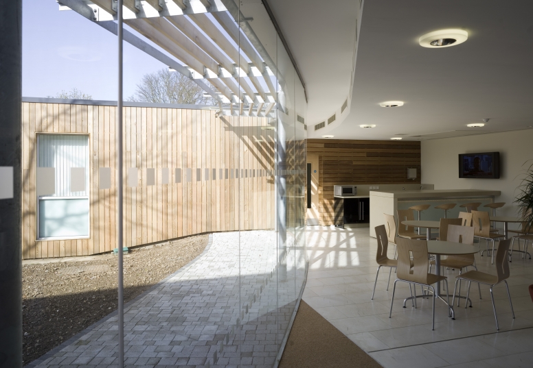 A sustainable commercial building in a semi-rural location. This 13,000 sqft office building was designed as the Headquarters for Hanson's European IT department. Joined to an existing data centre with a glazed link section creating the entrance elevation, opening to a double-height area with a large conical skylight.
