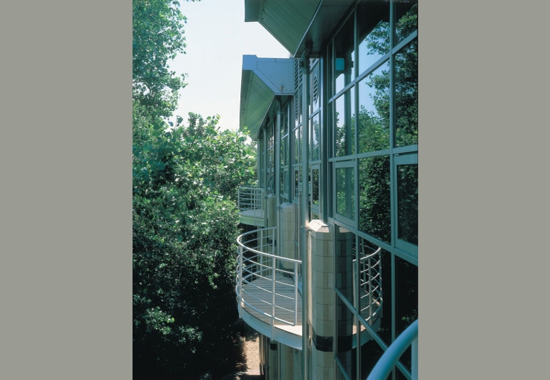 The site for this building is on the very edge of the City, on a strip of land, between an office building with a brutal aesthetic of concrete cladding panels and the anti-architecture of the drive-in diner of the Little Chef. An opportunity which appeared to offer little possibility for development, other than for a motor car dealership or an industrial building. Structuring a design for a three-storey office building into a piece of left over land was an engineering feat as well as an organisational problem in space planning and architecture.
