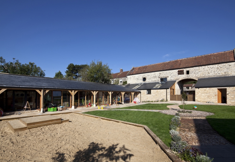 Aaron Evans Architects originally obtained detailed planning and listed building consents for the conversion of the threshing barn and long barn into offices. We were subsequently appointed to prepare alternative proposals converting the threshing barn into a nursery. The complex conversion, which also catered for a small roost of lesser horseshoe bats, was completed Spring 2012 and received full OFSTED certification.