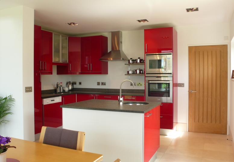 A split level home on a steep slope with a southern aspect which takes advantage of spectacular view. Cedar cladding and a zinc roof, high insulation and heat recovery systems as well as using locally sourced materials ensure the building is as sustainable as possible.