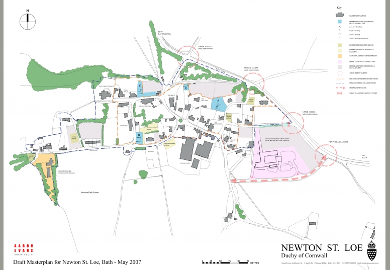 In 2006 the Duchy of Cornwall appointed Aaron Evans Architects to prepare a character assessment of the historic estate village of Newton St. Loe near Bath, listed grade I, II* and II. As part of this process the practice also undertook an analysis of local farms owned by the Duchy.
