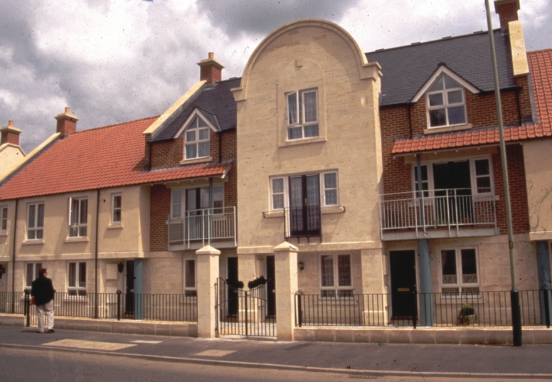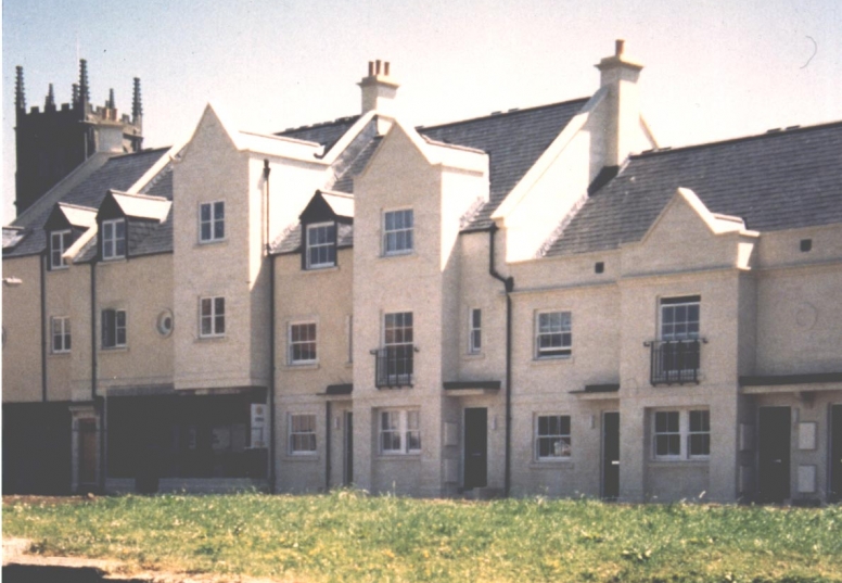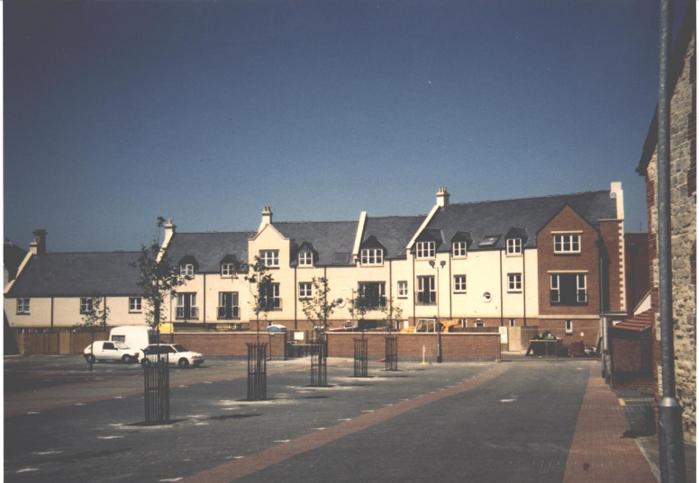 Bank Site is one of 3 town centre sites, built in phases. This project involved the linking of 2 listed buildings and the enclosure of a public car park. Consisting of 22 houses, 6 flats and 3 shops, it succeeded in healing the scar left by the removal of the five storey factory building.