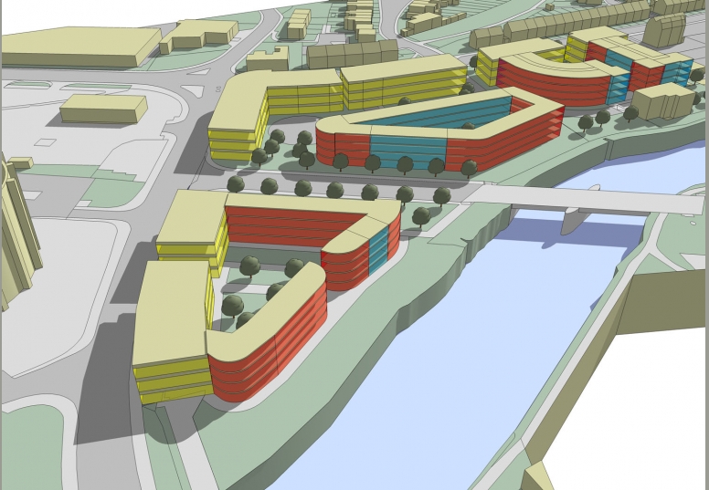 Appointed by a major residential developer, we prepared options for 3 major sites on the Lower Bristol Road, Bath: Rosebury Place, United Dairies and Herman Miller. Comprising of a mixed use scheme including residential, office space and retail the proposals responded to Council aspirations at the time to address the River Avon and Lower Bristol Road whilst creating a sense of space whilst respecting a proposed Rapid Transit Route across the city. The proposals were considered 'premature' as policy for the redevelopment of Bath Western Riverside had not yet been formulated. The Bath Trasport package was subsequently abandoned.